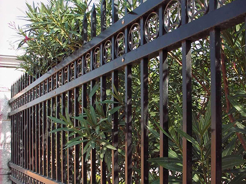 鐵藝護欄網產品采用組裝式整體框架結構,有利于施工,安裝方便、快捷。網片與立柱的連接采用半圓頭方頸螺栓,配以防盜墊圈,能防止隔離柵被人為地隨意拆卸。適合大批量生產,作為公路或公園小區隔離網,一般高度不超過2米,與自然環境相協調。
