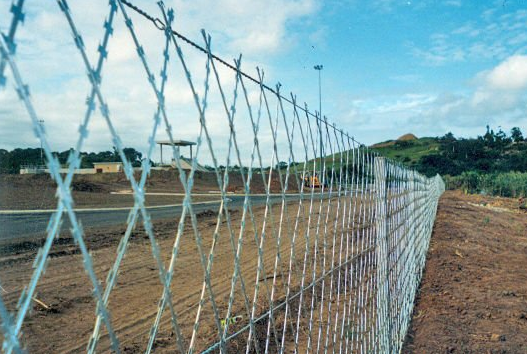 軍事基地刀刺焊接網 防攀爬安全刀刺網材質:*低碳鋼絲。監獄隔離網編織方法:編制焊接而成。監獄隔離網表面處理:電鍍、熱鍍、噴塑、浸塑。軍事基地刀刺焊接網 防攀爬安全刀刺網優點:1、具有美觀、實用、方便運輸和安裝的特點。2、要以在在安裝時地形適應地形,與立柱連接位隨地面起伏可上下調整;3、在機場護欄網的橫向加裝四道折彎加強筋,在整體成本增加不多的同時,使網面強度和美感顯著增加,是目前國內外*受歡迎*。軍事基地刀刺焊接網 防攀爬安全刀刺網主要用途:監獄、看守所、戒毒所、機場封閉、私人地域、軍事重地、場區圍網、開發區隔離網使用。